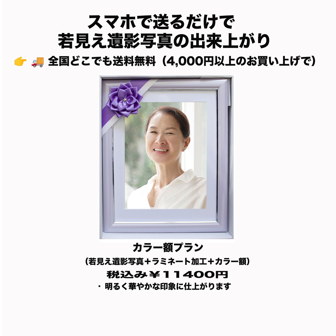 『若見え遺影写真』は、スマホで撮影したお写真を送るだけで、